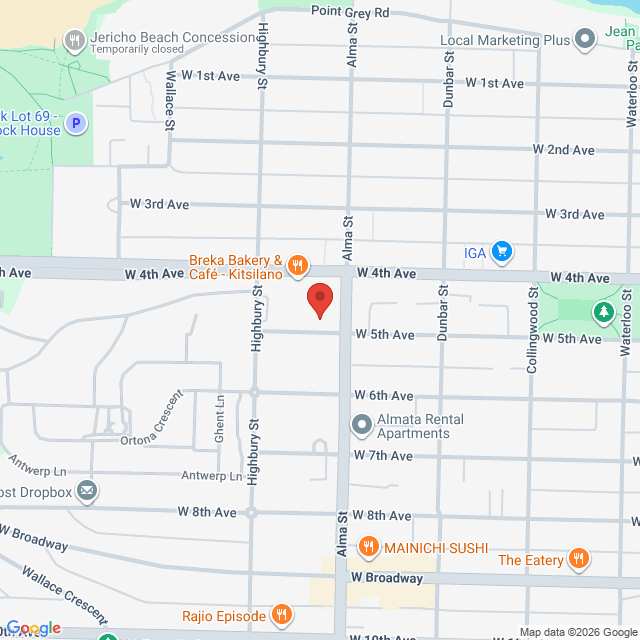Located in Jericho village at the corner of 4th and Alma. Enter by either the north or south door and come to the second floor. The village has parking that is monitored, and there is lots of free street parking available should you require a longer stay.